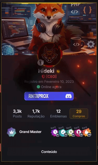 [CEO] Hideki Postado Fevereiro 4 [CEO] Compartilhar Postado Fevereiro 4 Novo Recurso / Customização Avatares e Banners Animados Deixe seu perfil único! Personalizar é muito simples. Como configurar: 1. Acesse seu Perfil. 2. Clique em Editar Perfil. 3. Role até o final da página para encontrar os campos: Decoração do Avatar Decoração do Banner 📂 Onde encontrar decorações? Escolha sua decoração nos sites abaixo, clique com o botão direito na imagem e selecione "Copiar endereço da imagem". 🔗 Yapper.shop 🔗 Discord-decoration.art ⚠️ Muito Importante: Formato da URL O link deve terminar com a extensão do arquivo (ex: .webp, .png, .gif). Veja os exemplos: [Avatar] https://cdn.discordapp.com/.../avatar.png [Banner] https://cdn.discordapp.com/.../fundo.png 👀 Veja como fica 1. Colocando o Link: 2. Resultado Final: Qualquer dificuldade, comente abaixo! Atenciosamente, Link para o comentário Compartilhar em outros sites Mais opções de compartilhamento...
